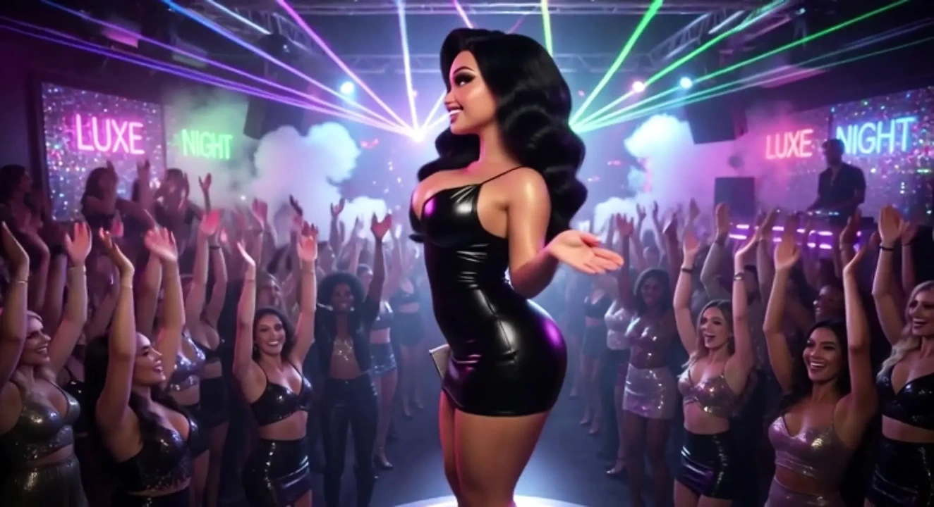 Beautiful Woman Enjoys Exciting Night At Vibrant Club Dancing Kissing Men And Becoming Fully Nude On All Fours
