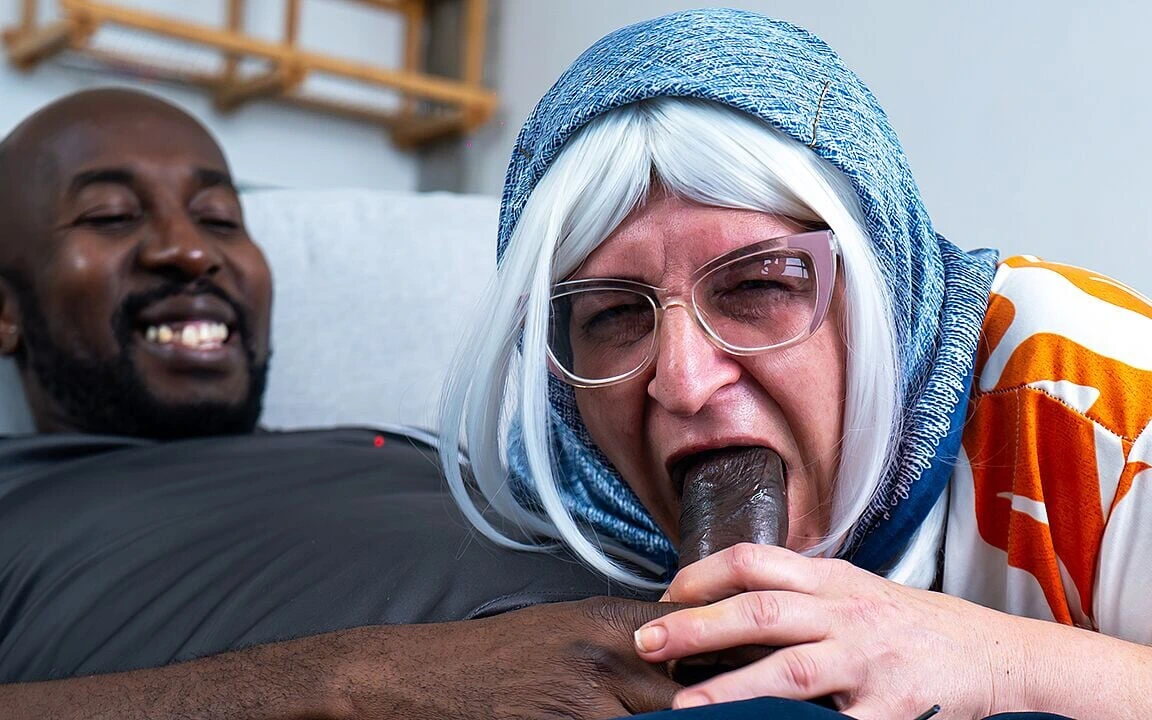 curvy fat belly mature with glasses and headscarf enjoys a extreme rough fuck lesson with a massive black cock deep inside her old holes